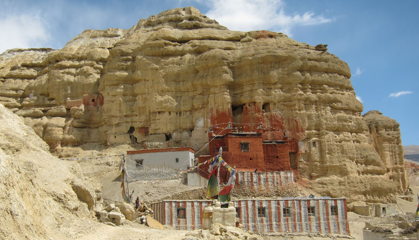 Di recente, una serie di almeno dodici grotte sono state scoperte a nord di Annapurna e vicino al villaggio. È decorato con antichi dipinti buddisti e incastonato in ripide scogliere a un’altitudine di 4.300 m. I dipinti mostrano l’influenza Newari, risalente a circa il XIII secolo. Le grotte contengono anche scritture tibetane eseguite con inchiostro, argento e oro e frammenti di ceramica dell’era precristiana.